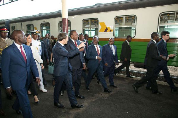En compagnie de son homologue Uhuru Kenyatta, le Président de la République a tenu une conférence de presse à la gare centrale de Nairobi, afin de mettre en valeur le projet de réhabilitation et d’extension du réseau ferré reliant le centre d’affaires de Nairobi à son aéroport international. Ce projet est porté par un consortium d’entreprises regroupant Transdev, Vinci, Egis, Alstom et Stoa. Il s’inscrit dans l’initiative française en faveur de la ville durable. D’autres projets portés par des entreprises françaises comme Peugeot, OCEA, Vinci, Matière, Schneider Electric ou Sainte-Lizaigne ont fait l’objet de signatures ou de valorisations.