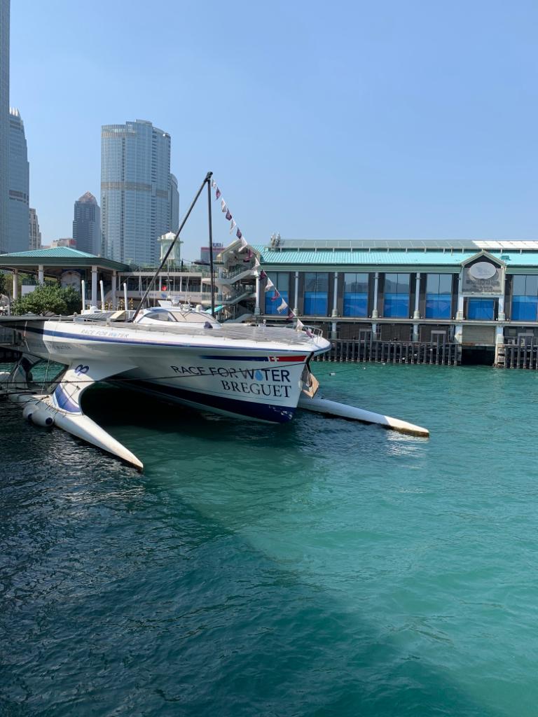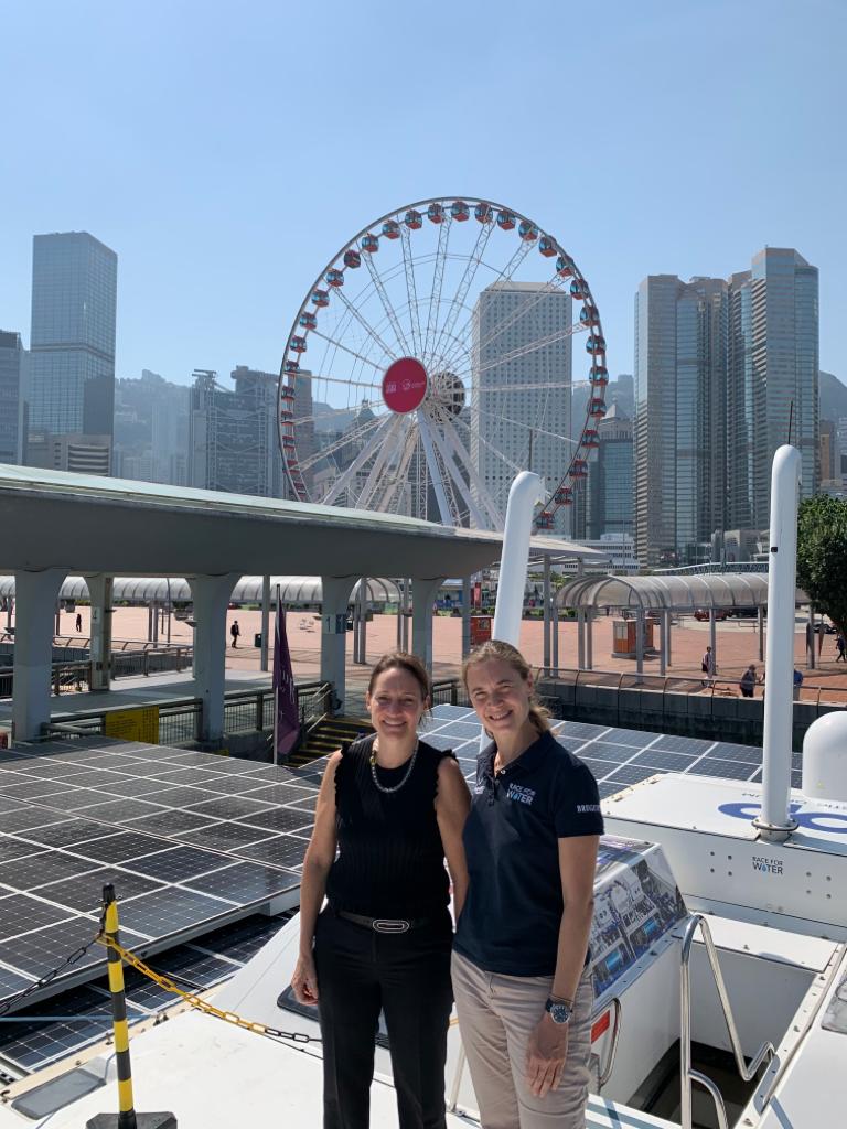 L'équipage francais de Race for Water, son capitaine Jean-Marc Norman ainsi que le président de la fondation Race for Water, Marco Simeoni, ont accueilli la Chef du Service économique de Hong Kong sur leur navire 100% propulsé aux énergies renouvelables lors d'une escale à Hong Kong, début novembre.