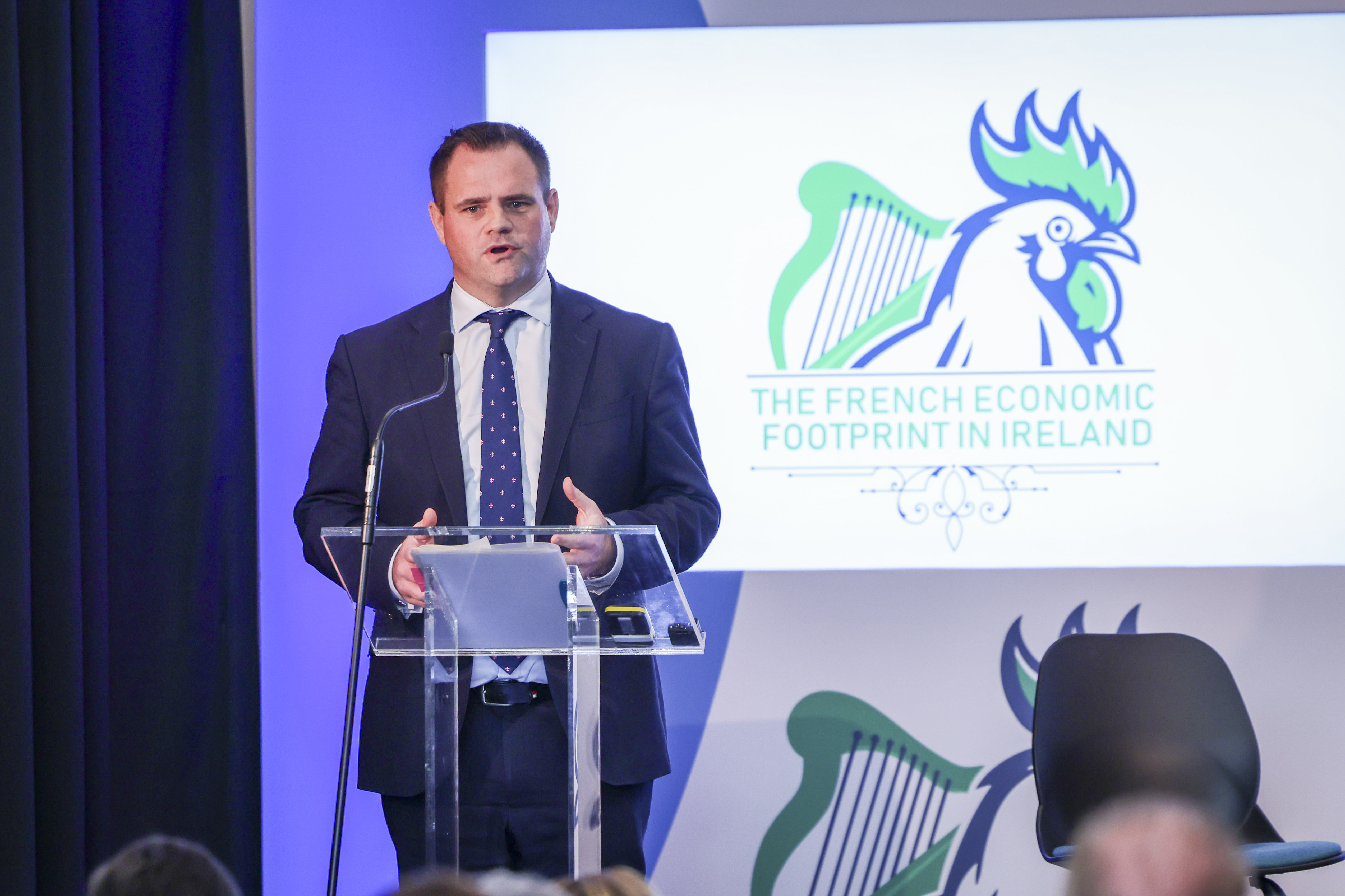 Neale Richmond TD, Secrétaire d'État pour les Entreprises, l'Emploi et le Commerce, a prononcé les remarques de clôture de l'événement, qui a réuni des représentants d'entreprises françaises en Irlande et des agences publiques pertinentes soutenant leur investissement en Irlande.