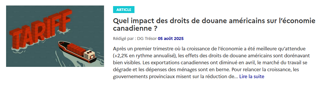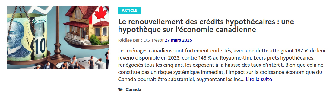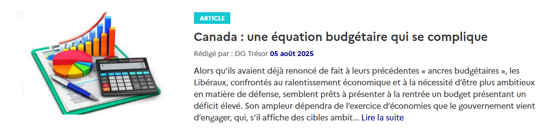 Retrouvez ci-dessous les dernières publications macroéconomiques du Service économique régional d'Ottawa :