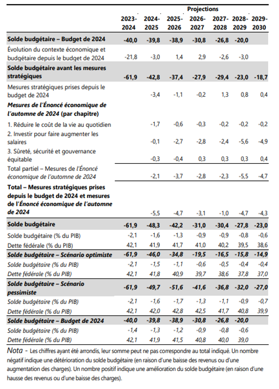 Annexe VI : Projections budgétaires du gouvernement fédéral dans l'Enoncé économique d'automne 2024