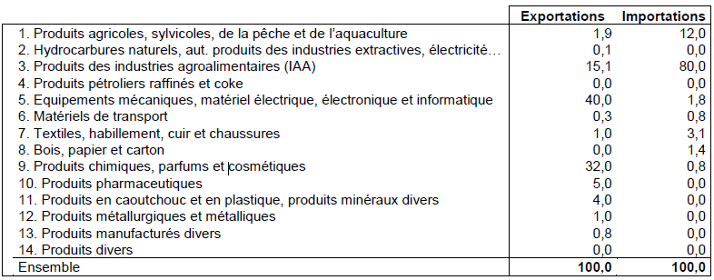 Tableau 1 : Structure en 2017 des exportations et importations par secteurs (en %)