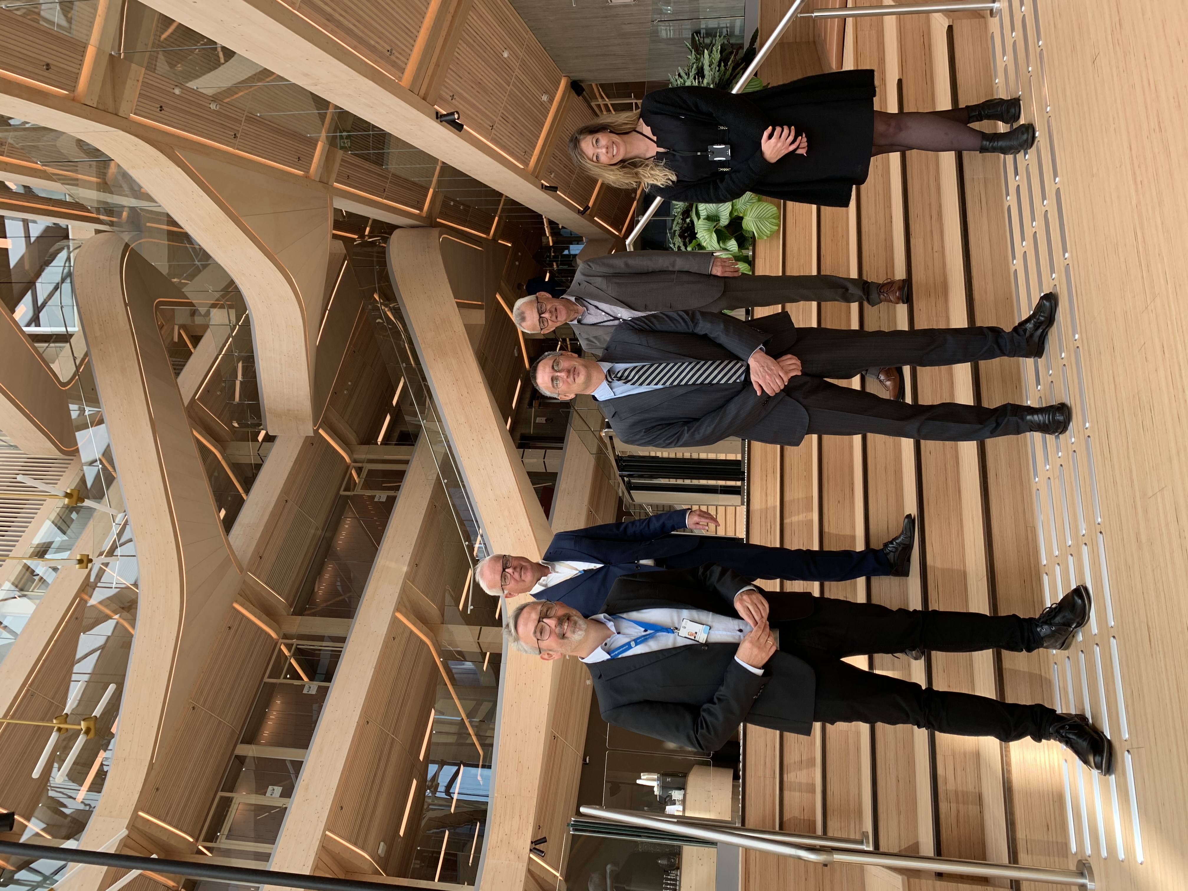 Demi-journée de travail avec le cluster smart cities de Stavanger, référent national. Aux côtés de Ivar Rusdal, P-DG de Nordic Edge, Gunnar Crawford, Head os Stavanger Smart city, Kine Norland, Nordic Edge/VIA et notre hôte, Directeur de la communication et des affaires publiques de Sparebank Vest dans le bâtiment innovant Finansparken.